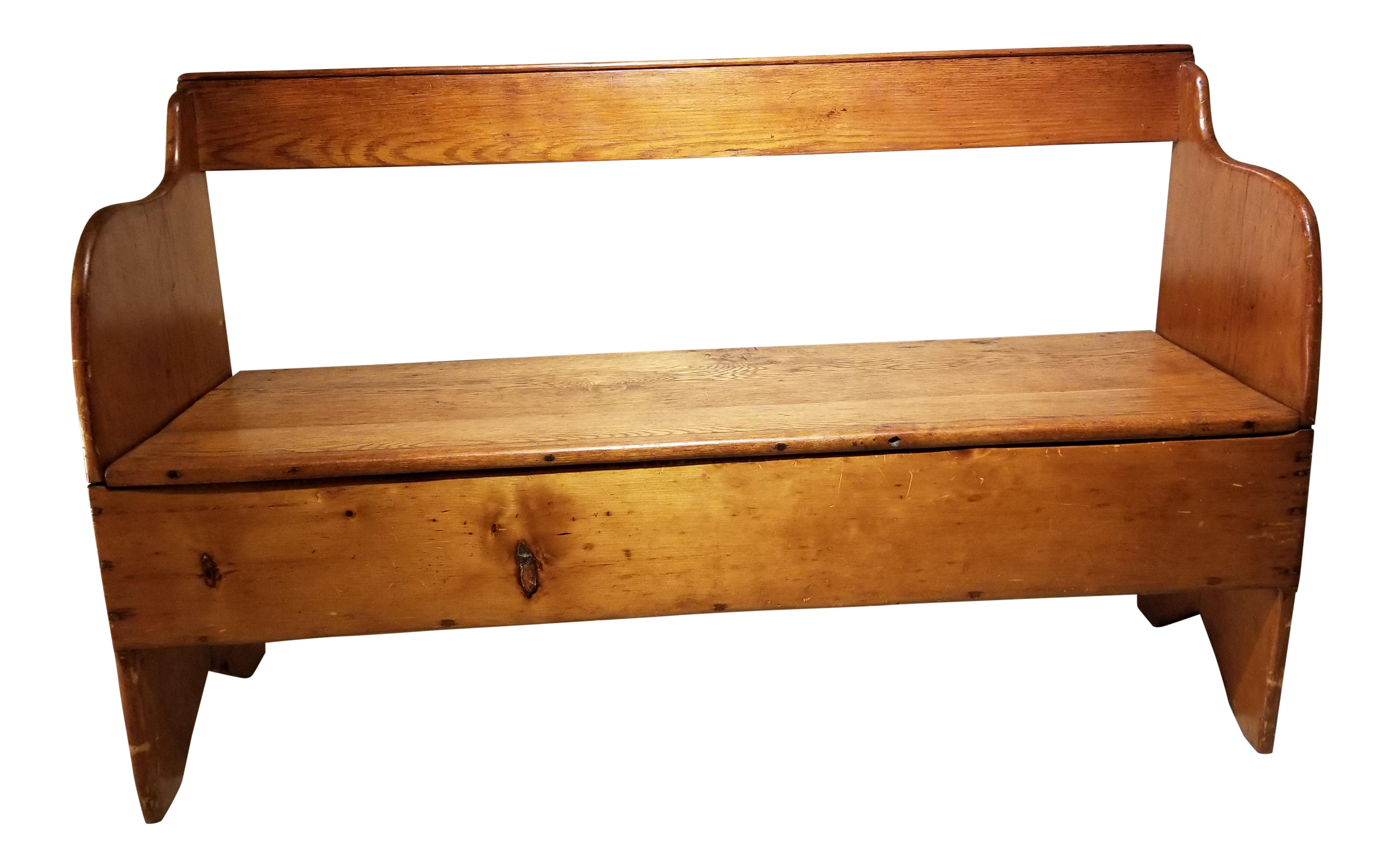 1899 Antique Hungarian Folk Art Pine Storage Bench Hand Painted