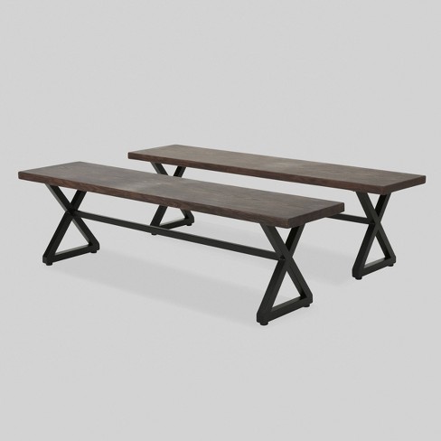 Rolando 2pk Aluminum Outdoor Patio Dining Bench Brown