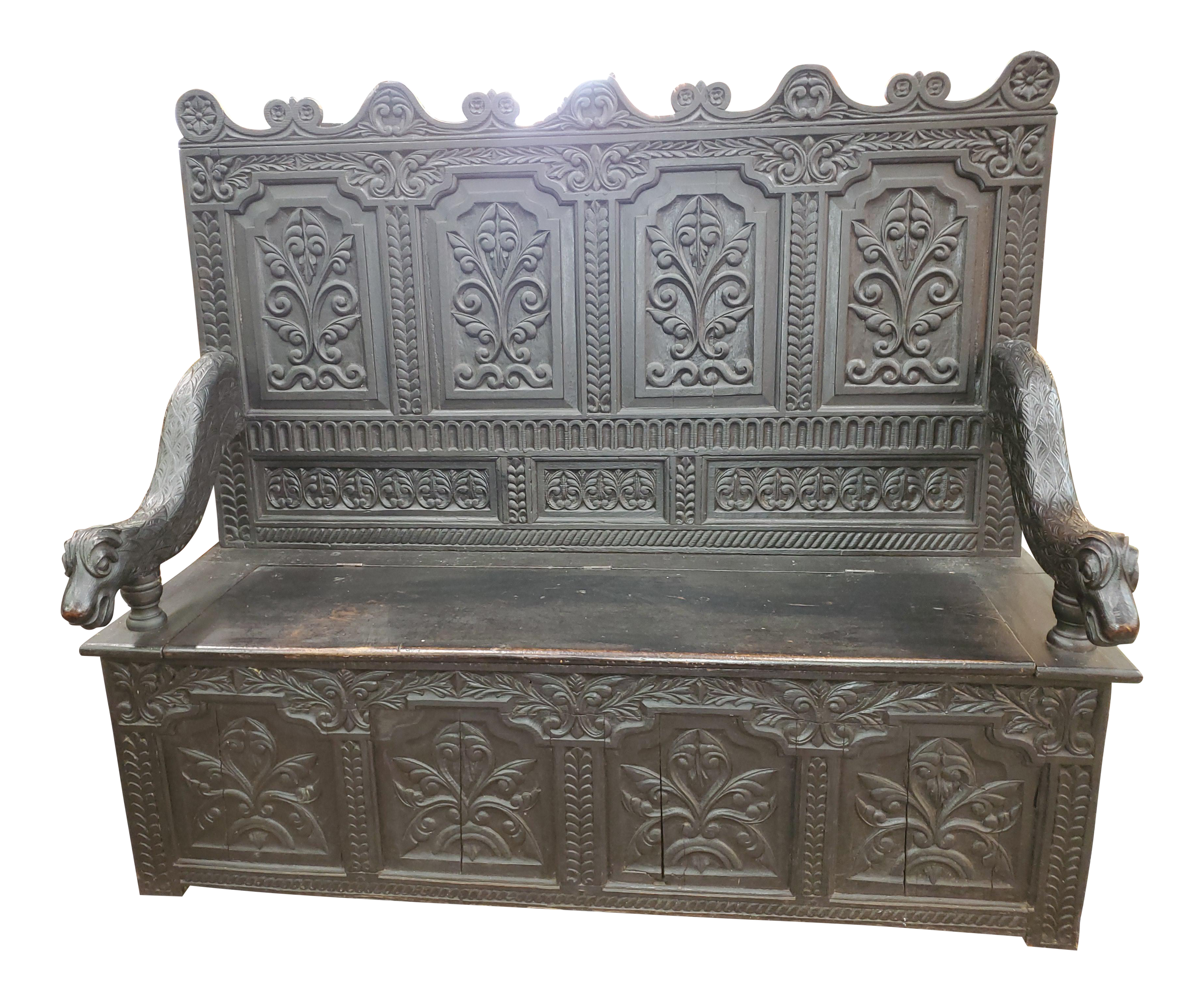 19thc English Oak Hall Bench Settee With Antique Tapestry At 1stdibs