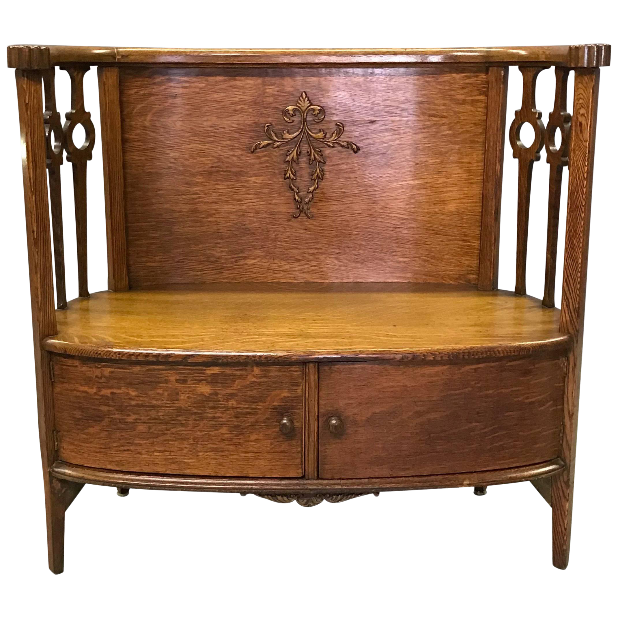 Antique Carved Tiger Oak Entryway Settle Storage Bench For Sale At