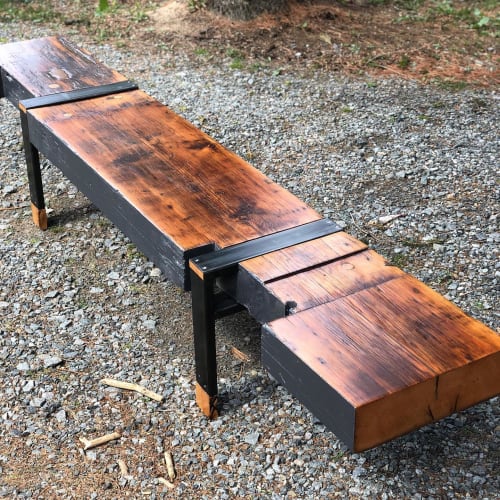 Outdoor Bench Made Using Reclaimed Barnwood Flooring With