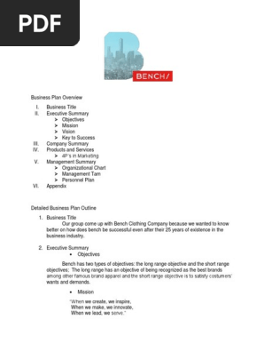 Bench Business Plan Retail Brand Free 30 Day Trial Scribd