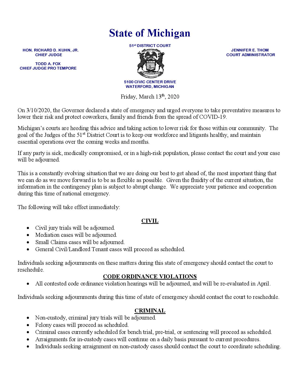 Some Michigan Jury Trials Probation Reporting Canceled Due To