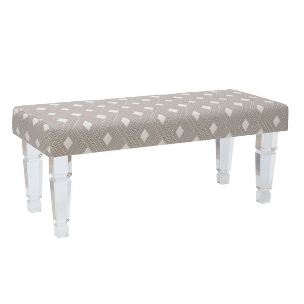 Tan Linen Bench With Thick Acrylic Legs Clear Home Design