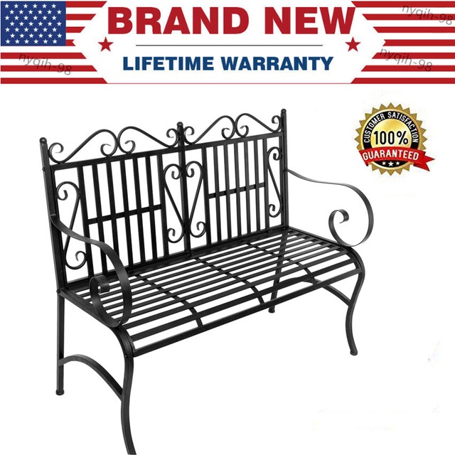 Gardenised 50 In Black 2 Person Metal Patio Garden Park Yard
