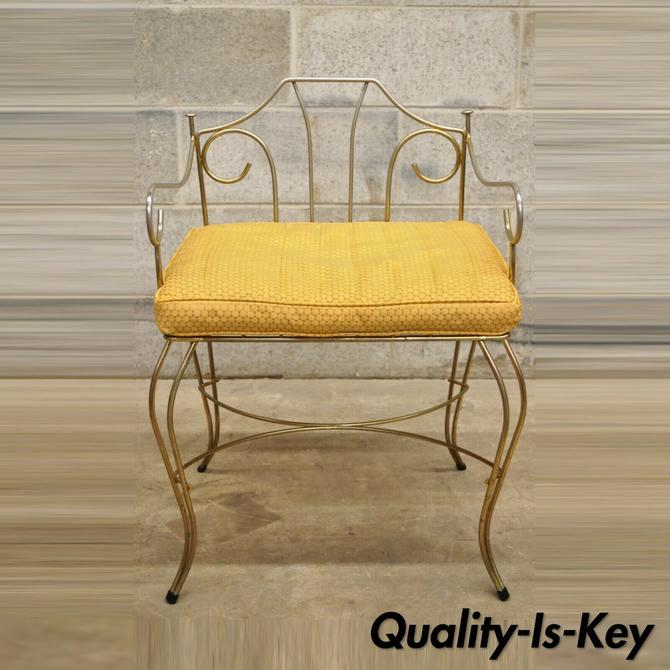 Vintage Metal Gold Hollywood Regency Vanity Bench Boudoir Bedroom