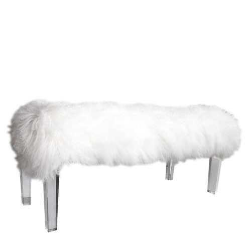 Dulce Kd Faux Fur Bench Acrylic Legs Lucerne White