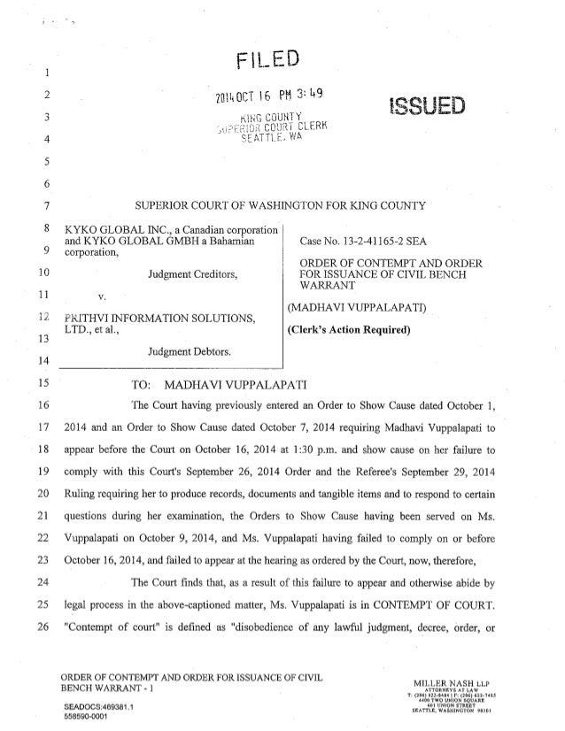 Order Of Contempt And Order For Issuance Of Civil Bench Warrant Again