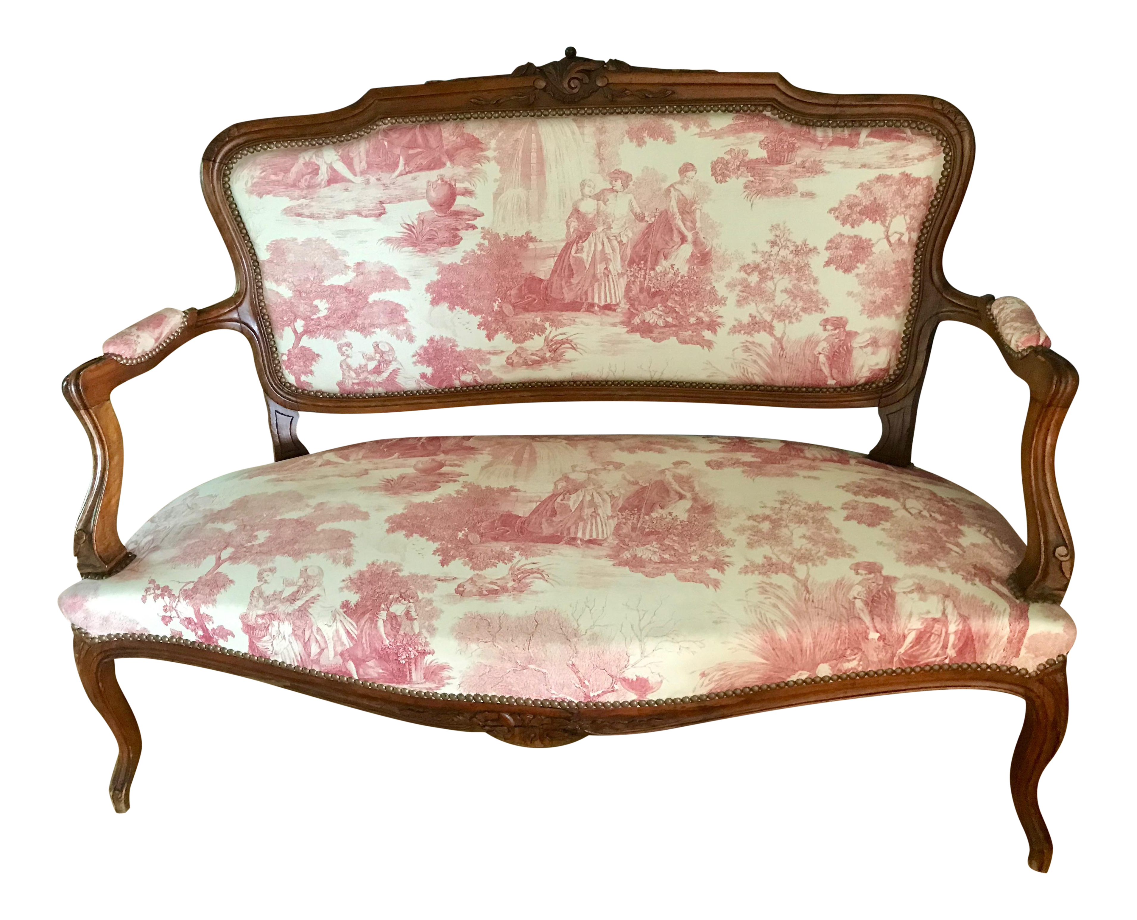 French Walnut Antique Louis Xv Settee Loveseat Bench Living Room