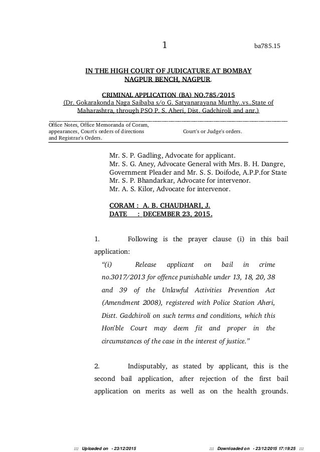 Nagpur Bench Of Bombay Hc Rejects Saibaba S Plea Challenging