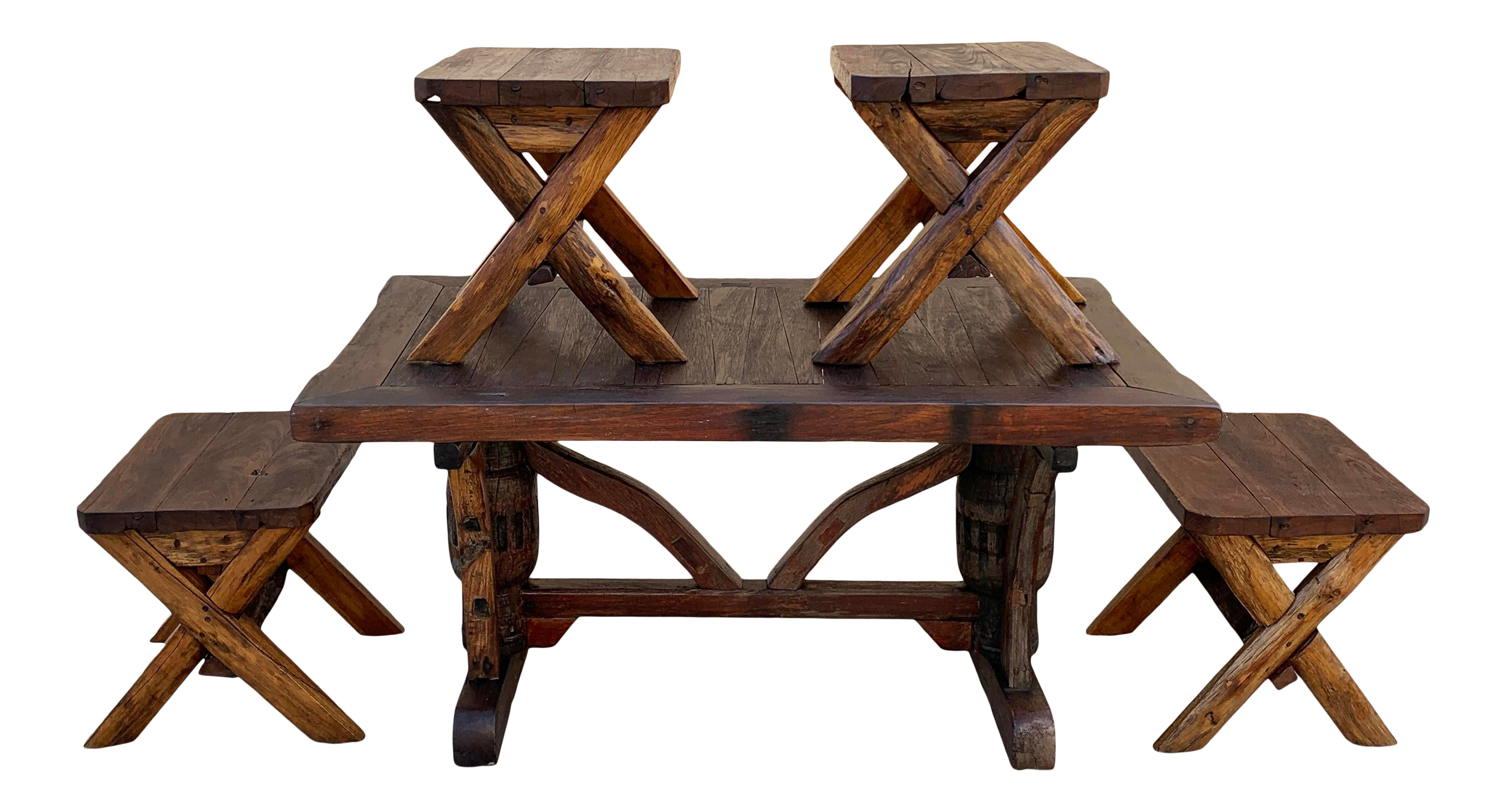 Indonesian Teak Dining Table Set With 4 Bench Seats Chairish