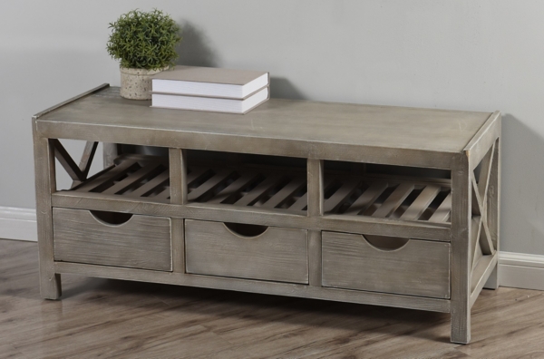Beadboard 3 Drawer Light Gray Storage Bench Kirklands