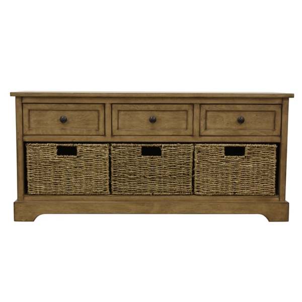 Adalynn Sahara Storage Bench With 3 Wicker Baskets Kirklands