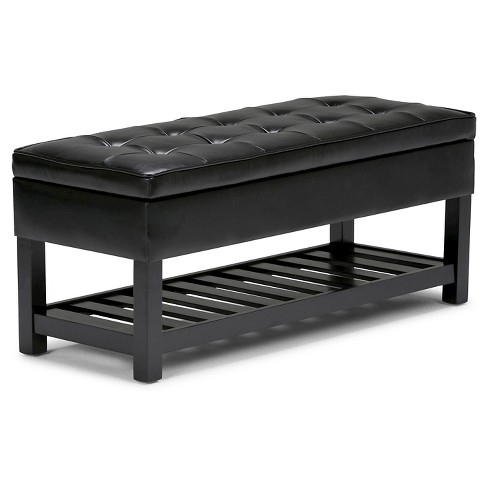 Simpli Home Lacey Faux Leather Tufted Ottoman Bench In Black