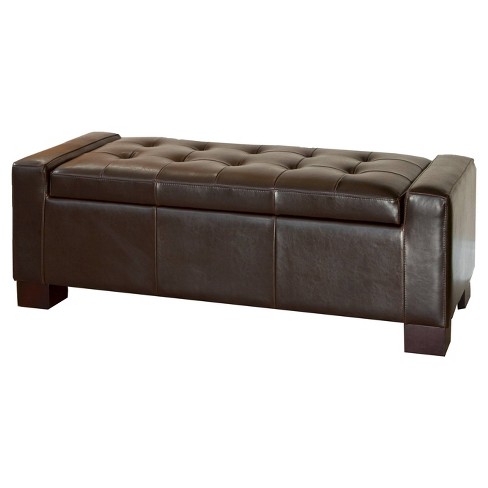 Guernsey Leather Storage Ottoman Bench Brown Christopher Knight