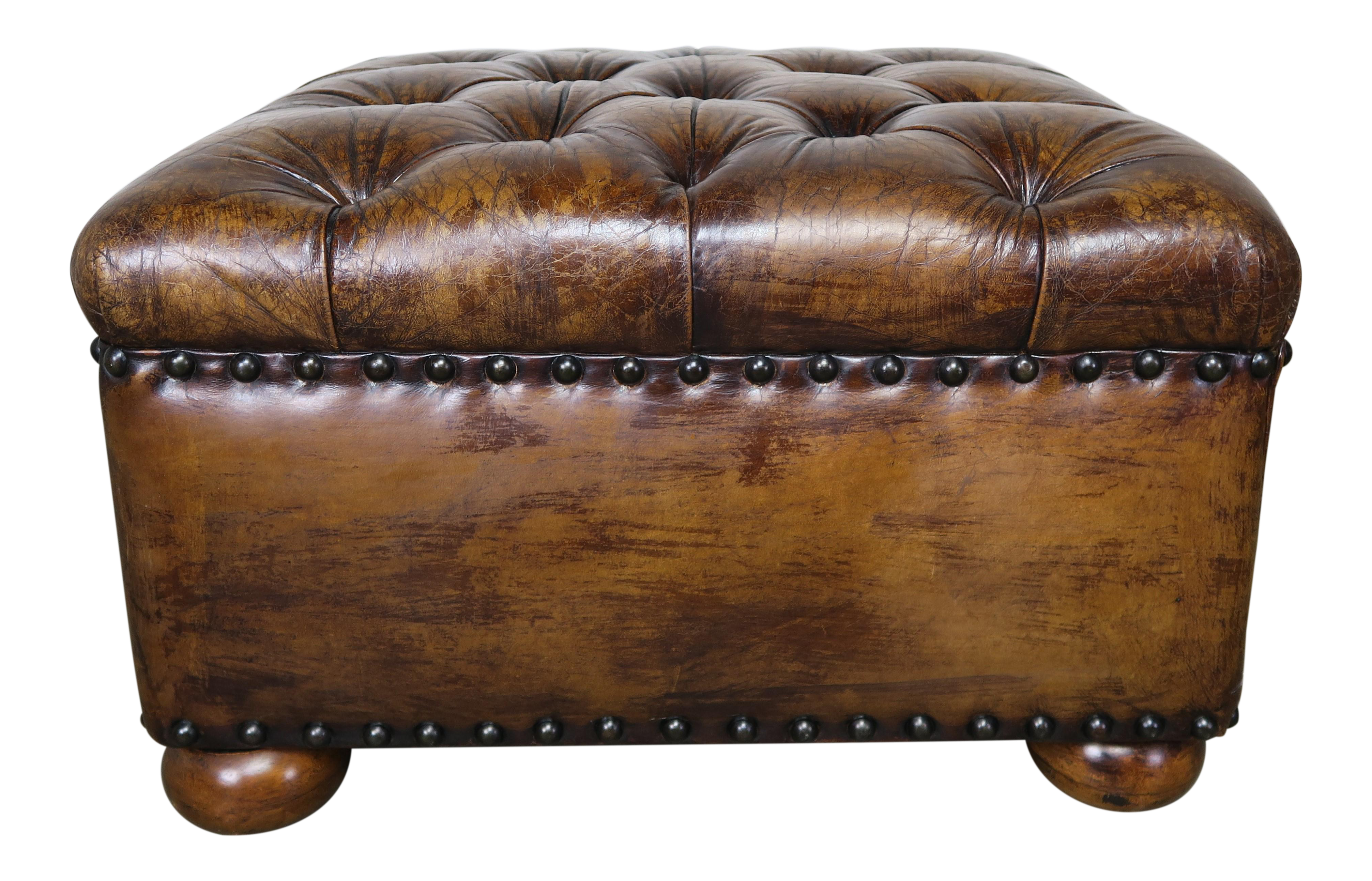 Upholstered Upholstered Brown Leather Tufted Ottoman Vntghome Com