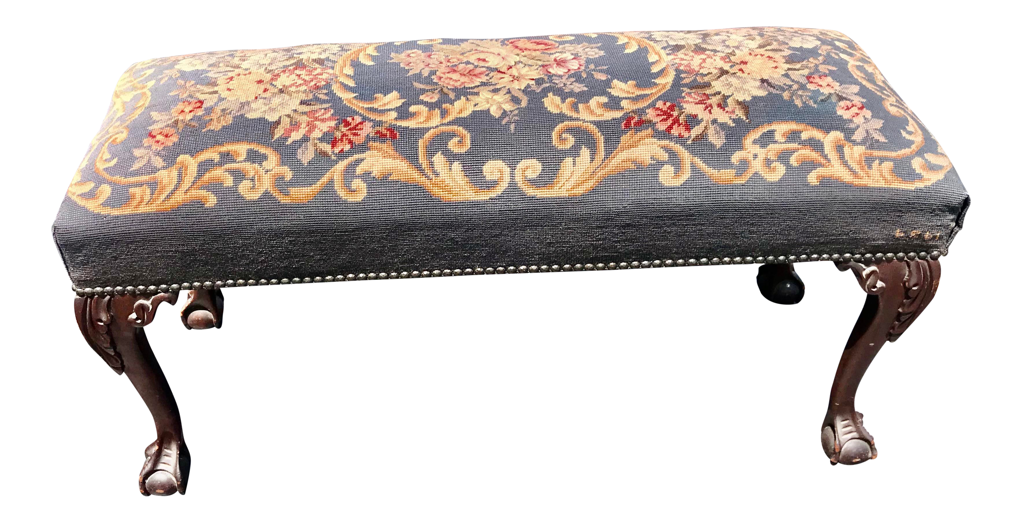 Antique Needlepoint Mahogany Ball And Claw Bench Chairish