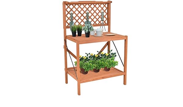 Folding Wood Potting Bench Planting Workstation Shelf W Top
