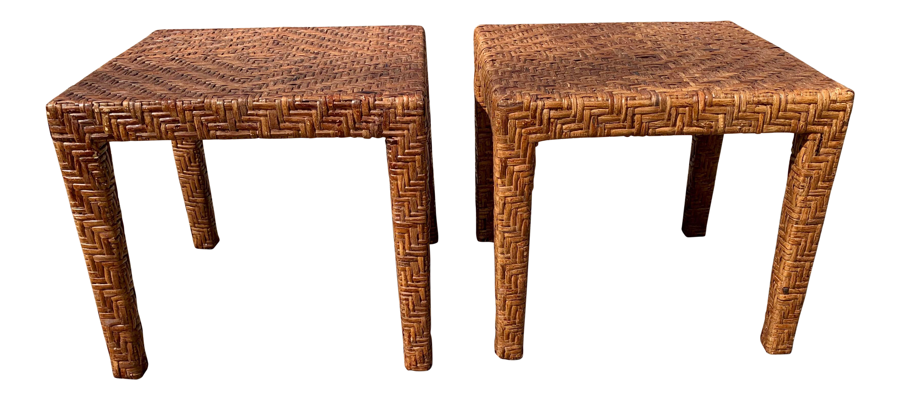 Mid 20th Century Woven Rattan Benches A Pair Chairish
