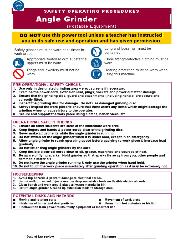Safe Operating Procedure Revised 3 12 Abrasive Wheels Grinders Bench Floor And Hand