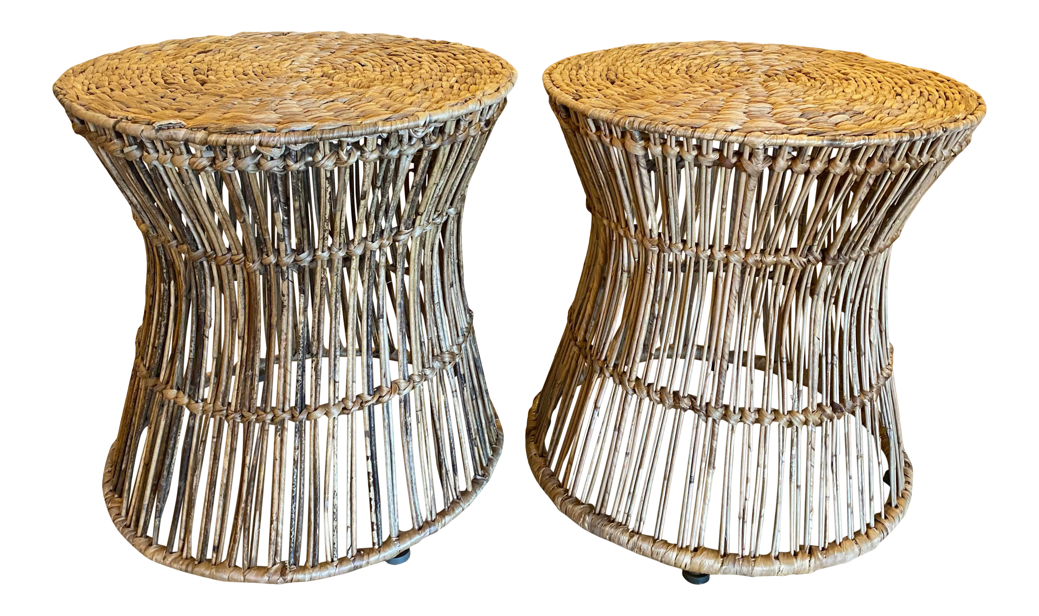 Vintage Tropical Palm Beach Rattan Seagrass Stools Benches
