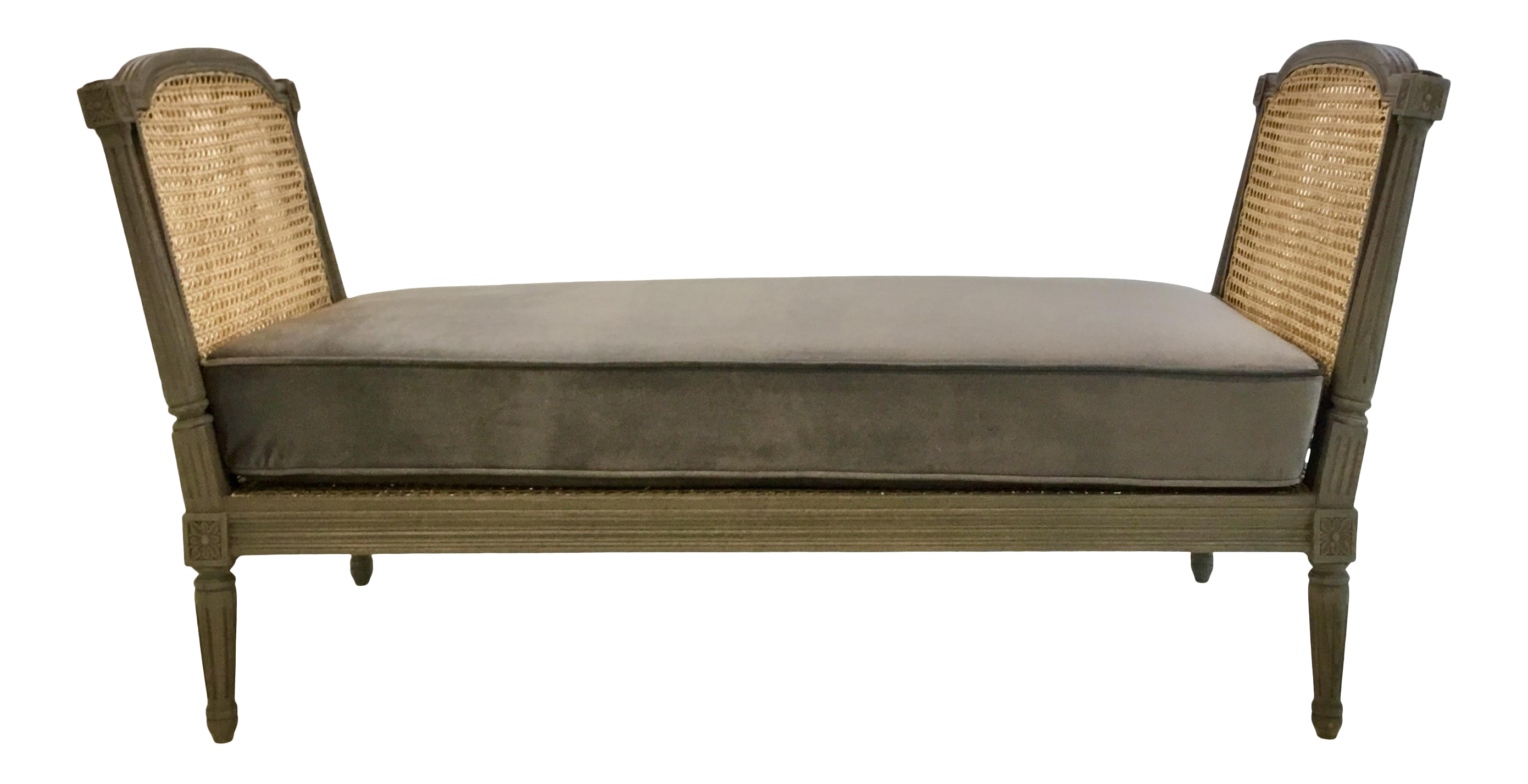 French Style Caned Bench Settee With Gray Velvet Cushion Chairish