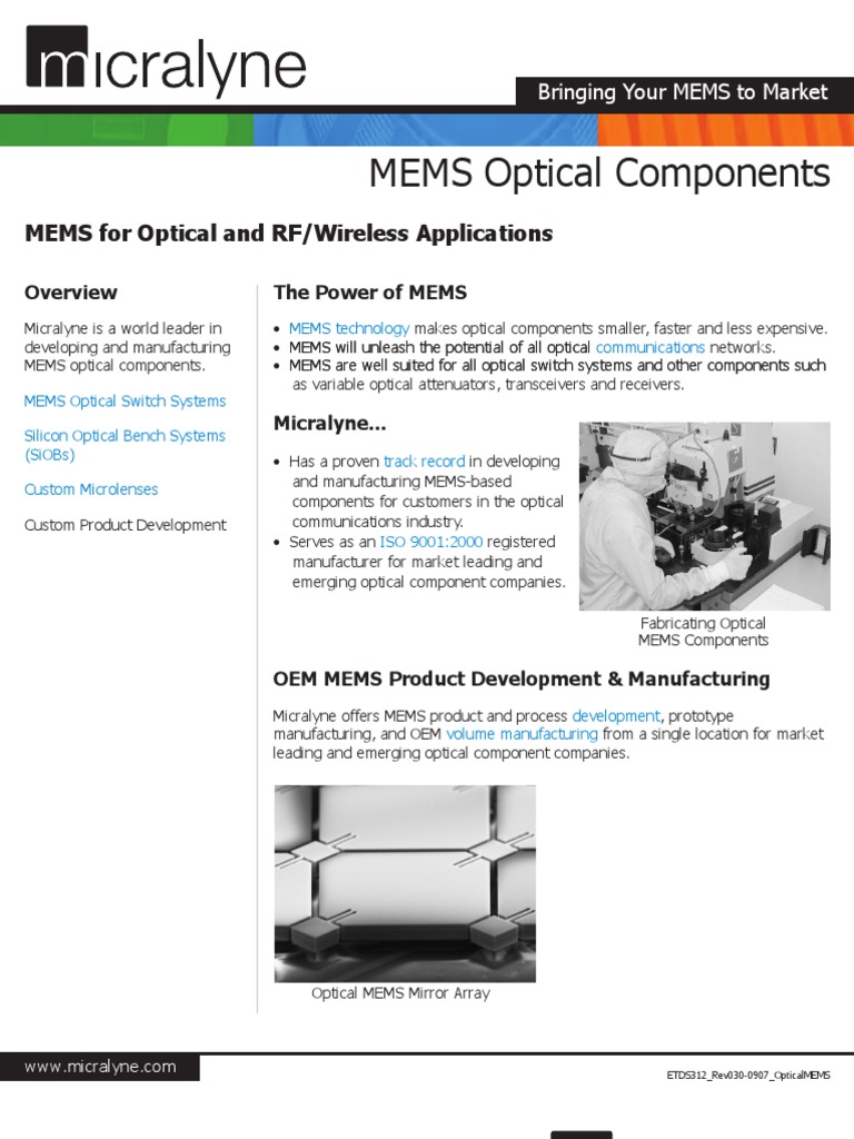 Micralyne Mems Optical Products Microelectromechanical Systems