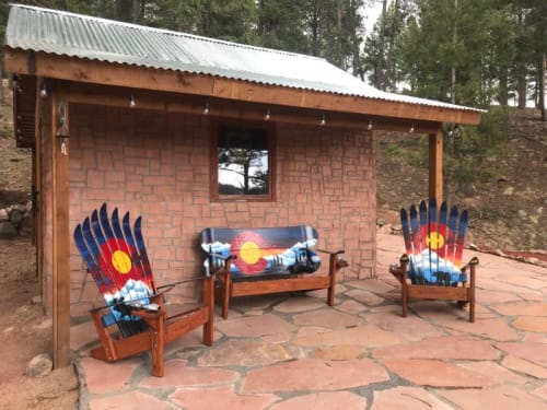 Custom Painted Ski Snowboard Benches Hand Painted With Oil Adirondack Style