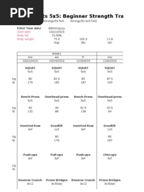 Stronglifts 5x5 Routine Spreadsheet Pdf Sheet Download Workout