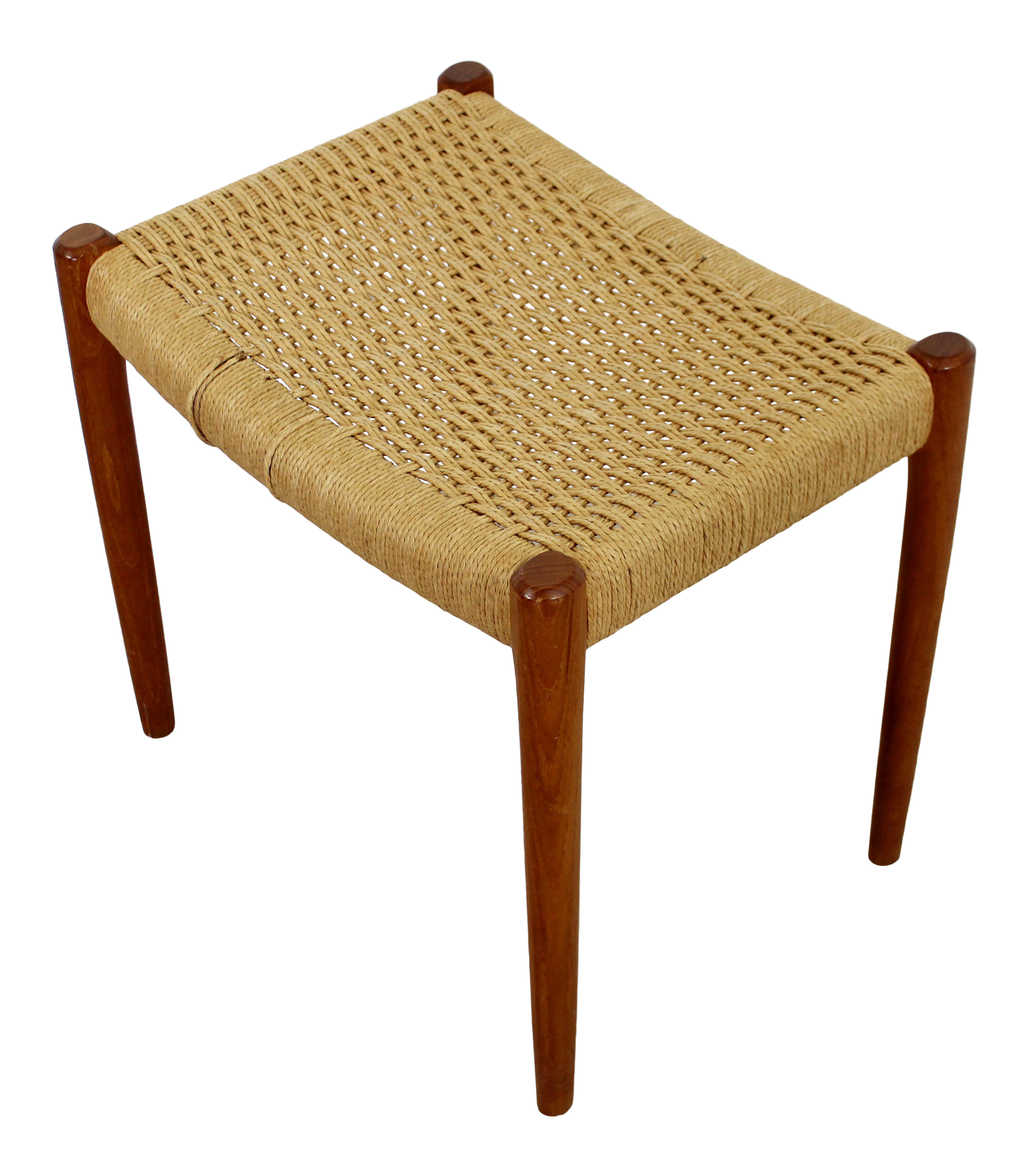 Danish Teak Bench Cord Seat J L Moller At 1stdibs