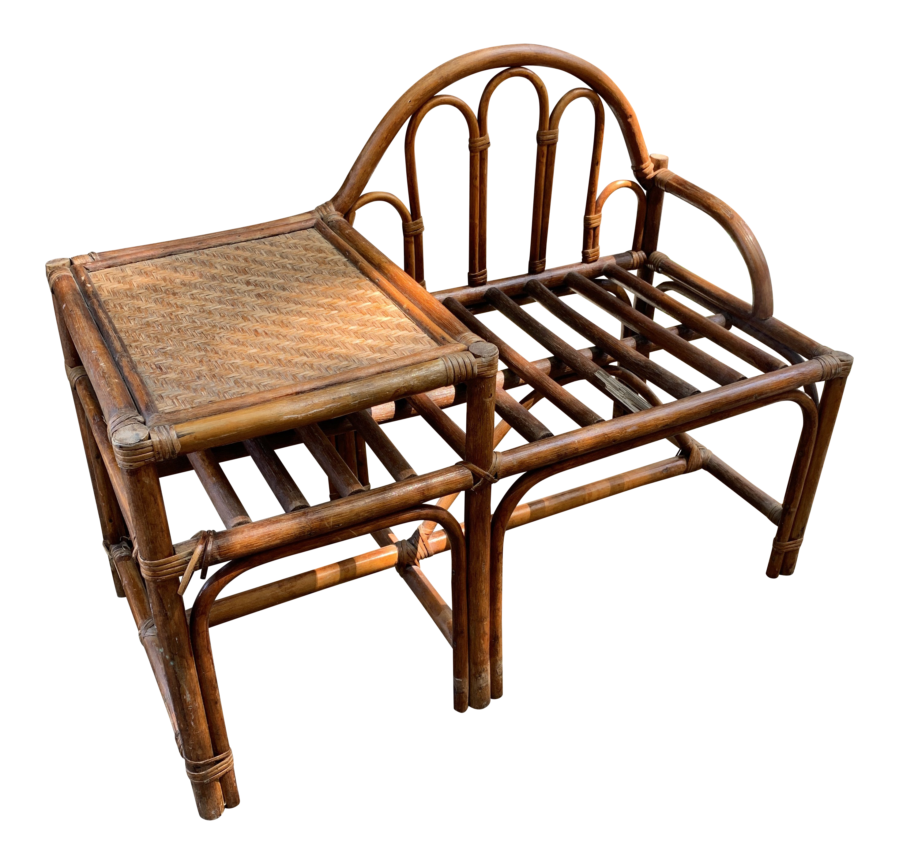 Vintage Rattan And Woven Telephone Bench Gossip Table Chairish