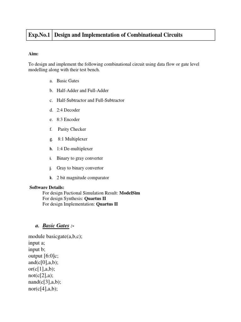 Verilog Codes For Combinational Ciruits Along With Their Test