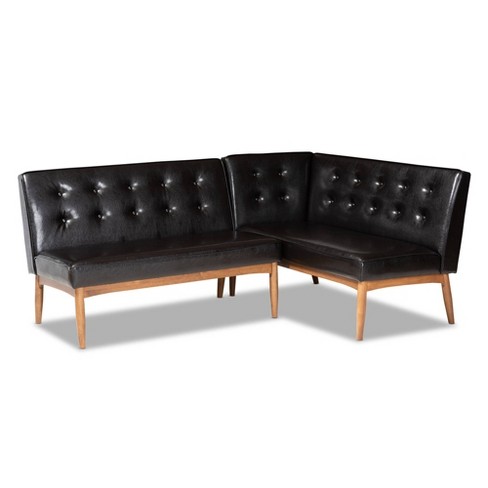 2pc Arvid Faux Leather Upholstered Wood Dining Corner Sofa Bench