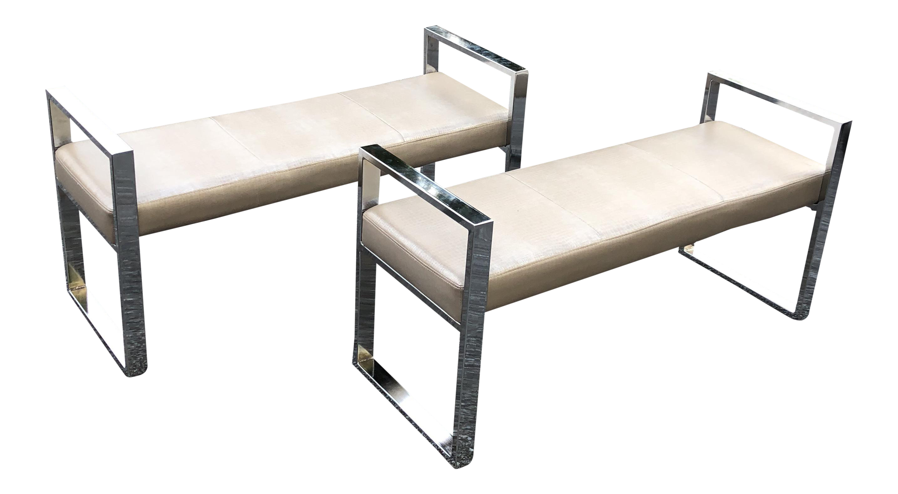 Chrome With Alligator Upholstery Benches A Pair Chairish