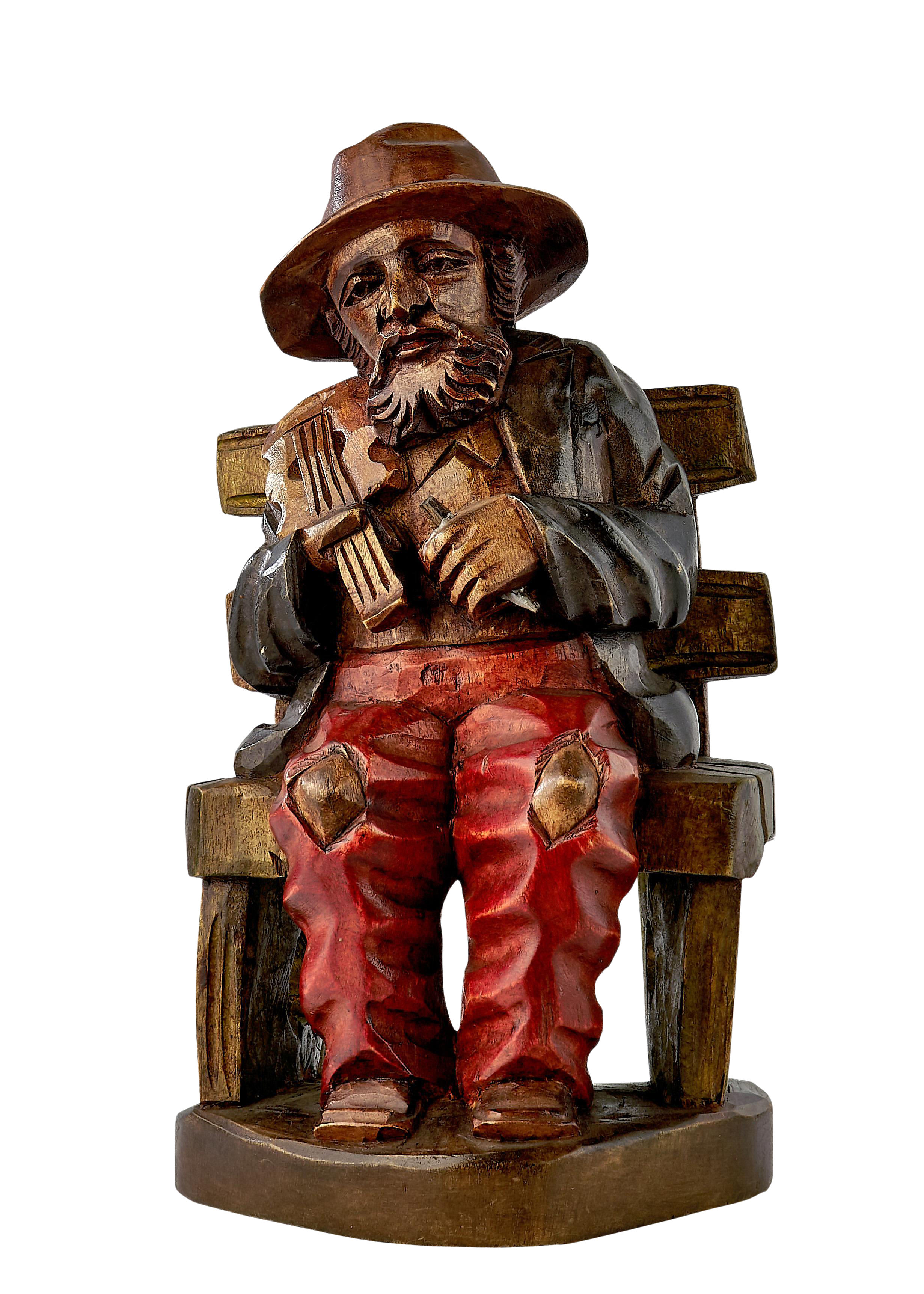 Vintage Wood Carving Of A Peasant Fiddler Seated On A Bench Chairish