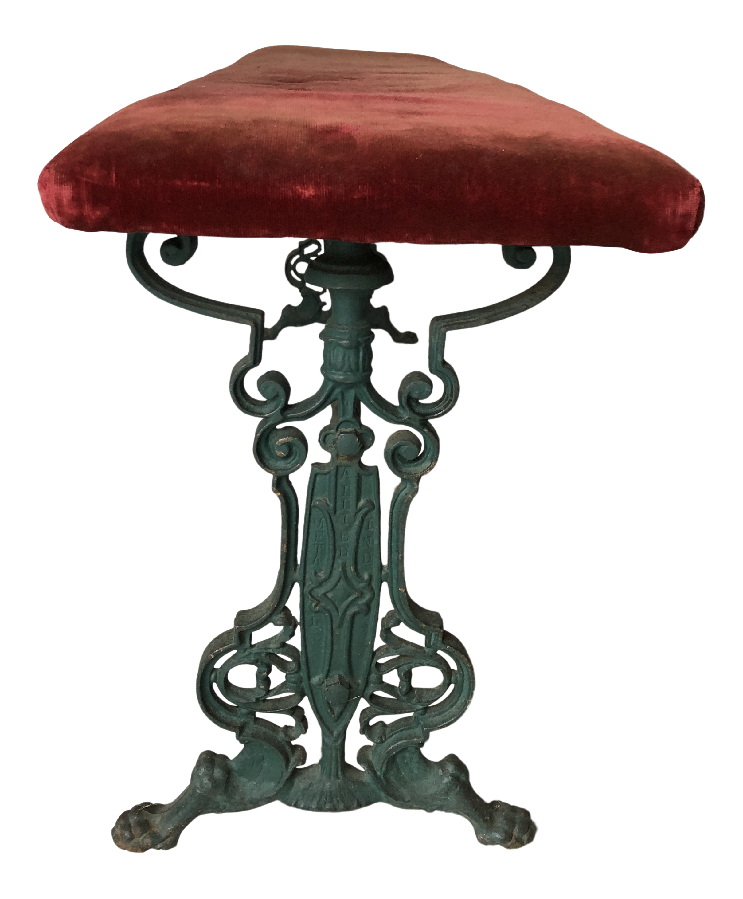 Art Nouveau Fireplace Bench Cast Iron Cranberry Velvet 48x12 Chairish