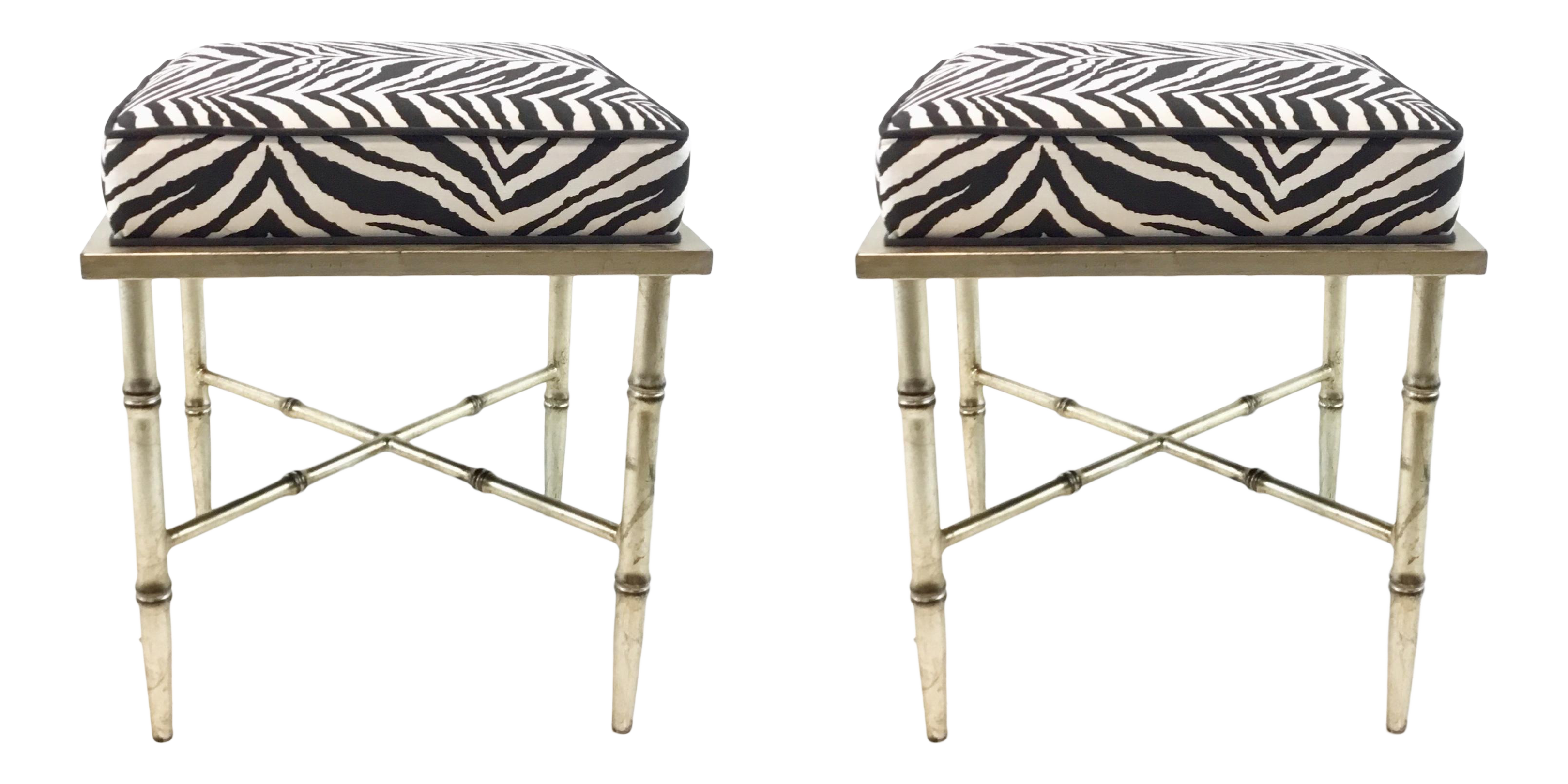 Modern Silver Bamboo Zebra Print Benches Pair Chairish
